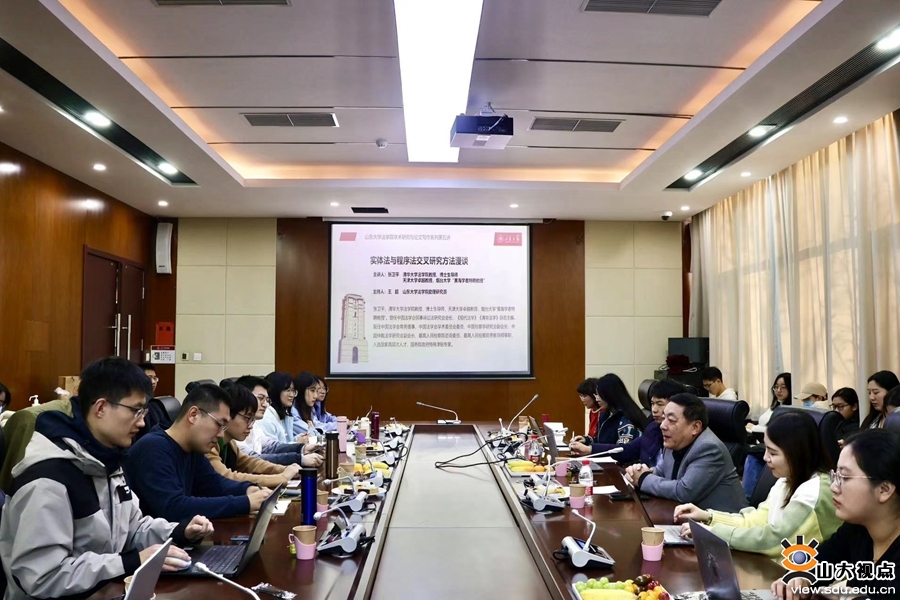 [本站讯]11月11日,山东大学法学院学术研究与论文写作系列第五讲于青岛校区华岗苑举行。清华大学法学院教授张卫平以“实体法与程序法交叉研究方法漫谈”为题作学术报告。讲座由山东大学法学院助理研究员王超主持,法学院师生五十余人参加论坛。