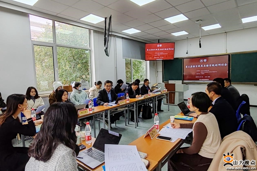[本站讯]11月11日下午,第三届语言政策与语言规划研讨会在外国语学院举行。此次研讨会由山东大学外国语学院与国家语言资源监测与研究有声媒体中心共同主办,来自教育部语言文字应用研究所、山东大学、中国传媒大学、常州大学、河海大学、浙江师范大学、首都经济贸易大学等高校的10位专家学者参会。