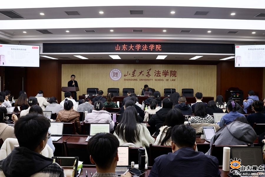 [本站讯]11月16日,“山东大学法学高端论坛”第四十四期于青岛校区华岗苑举办。浙江大学法学院教授张谷以“权利证券化的功能”为题作学术报告。讲座由山东大学法学院助理研究员孙犀铭主持,山东大学法学院教授张平华、助理研究员黄庆余、助理研究员杨瑞贺、博士后王玉乔担任与谈人,近百名师生参与讲座。