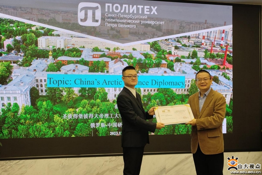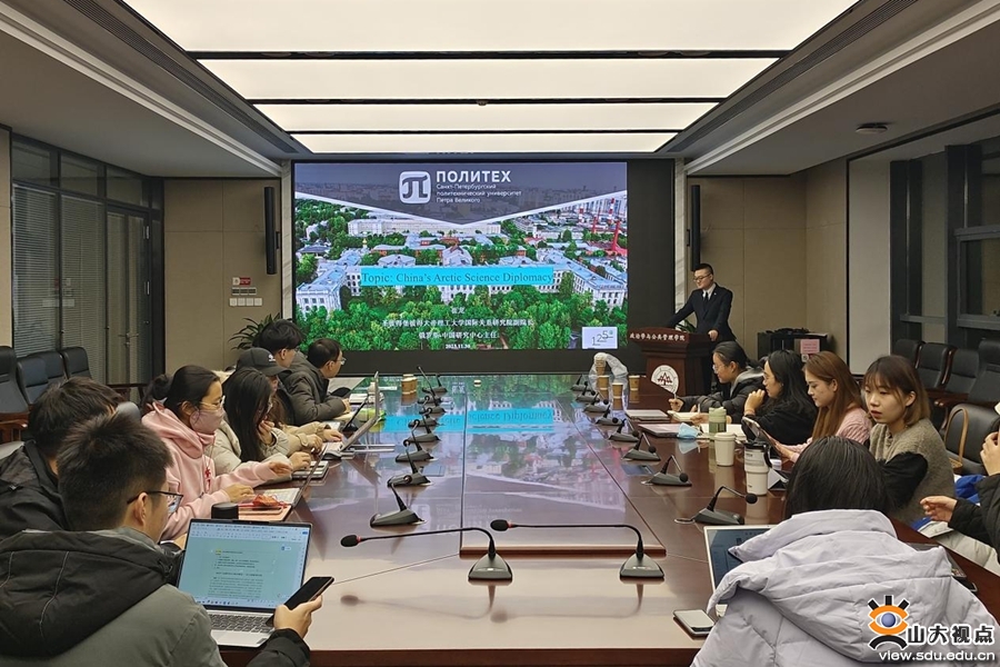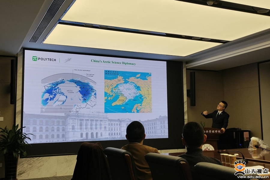 [本站讯]11月30日晚,由山东大学政治学与公共管理学院、山东大学上海合作组织研究院、山东大学公共安全研究院联合主办的“合作与发展”系列讲座第四期在青岛校区举办。本期讲座以“中国北极科学外交”为主题,由圣彼得堡彼得大帝理工大学国际关系研究院副院长、俄罗斯—中国研究中心主任崔龙博士主讲,山东大学政治学与公共管理学院特聘教授、上海合作组织研究院执行院长盛力教授主持。