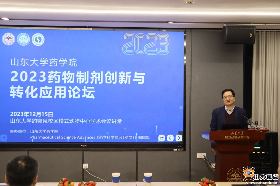 [本站讯]12月15日,2023药物制剂创新与转化应用论坛在山东大学趵突泉校区举办,论坛由山东大学药学院和Pharmaceutical Science Advances《药学科学前沿(英文)》期刊编辑部主办,主题为创新药物制剂的研发与转化应用。山东大学齐鲁医学院党工委书记、齐鲁医院党委书记陈鑫出席会议并致辞,药学院院长鞠建华主持论坛。