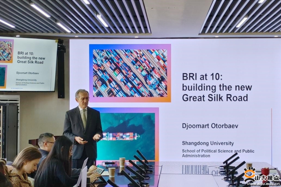 [本站讯]12月25日上午,由山东大学政治学与公共管理学院、山东大学上海合作组织研究院、山东大学公共安全研究院联合主办的“合作与发展”系列讲座第五期在华岗苑南楼举行。本期讲座以“展望‘一带一路’倡议 重演丝绸之路故事”为主题,北京师范大学一带一路学院特聘教授、上合问题专家Djoomart Otorbaev担任主讲人。山东大学政治学与公共管理学院特聘教授、上海合作组织研究院执行院长盛力主持讲座。