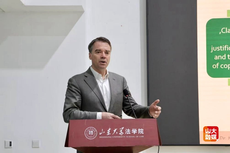 [本站讯]10月20日,山东大学法学院“知识产权论坛”第十七期于山东大学青岛校区举行。德国慕尼黑大学法学院GRUR讲席教授Matthias Leistner以“人工智能生成物的著作权保护”为题作学术报告。山东大学法学院海外特聘专家石巍主持讲座。中国人民大学法学院教授、山东大学兼职讲席教授刘孔中,山东大学法学院助理研究员刘建臣、逯悦,博士后许淑雯担任与谈人,百余名师生参加讲座。