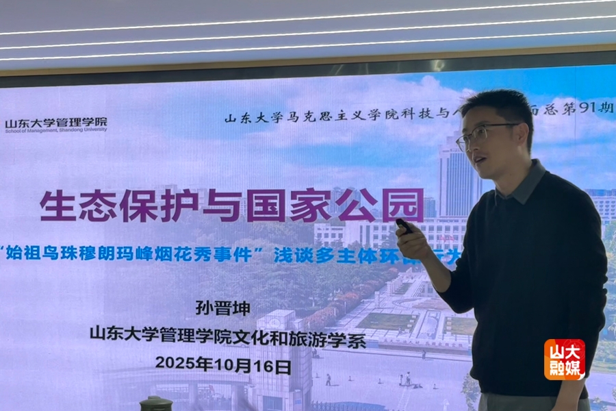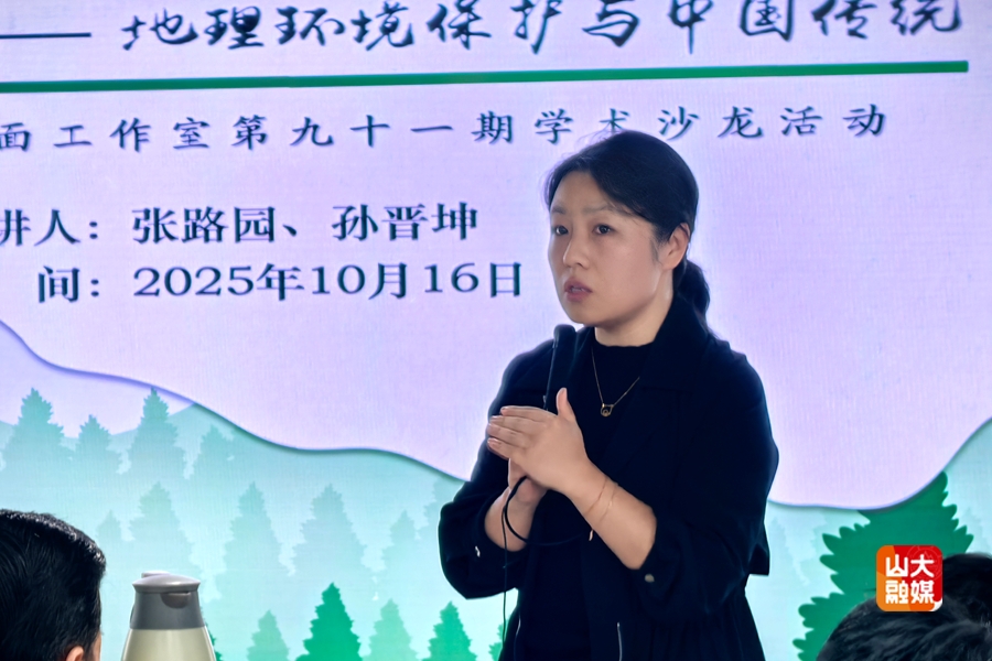 [本站讯]10月16日晚,山东大学“科技与人文面对面”工作室以“像保护眼睛一样保护环境——地理环境保护与中国传统”为主题,举办第91期学术沙龙活动。活动分为专家报告和互动交流两个环节。山东大学马克思主义学院副院长张路园,山东大学管理学院副教授孙晋坤担任主讲人。马克思主义学院尤文梦担任嘉宾,张政主持活动。来自全校各学院的100余名学生参加活动。