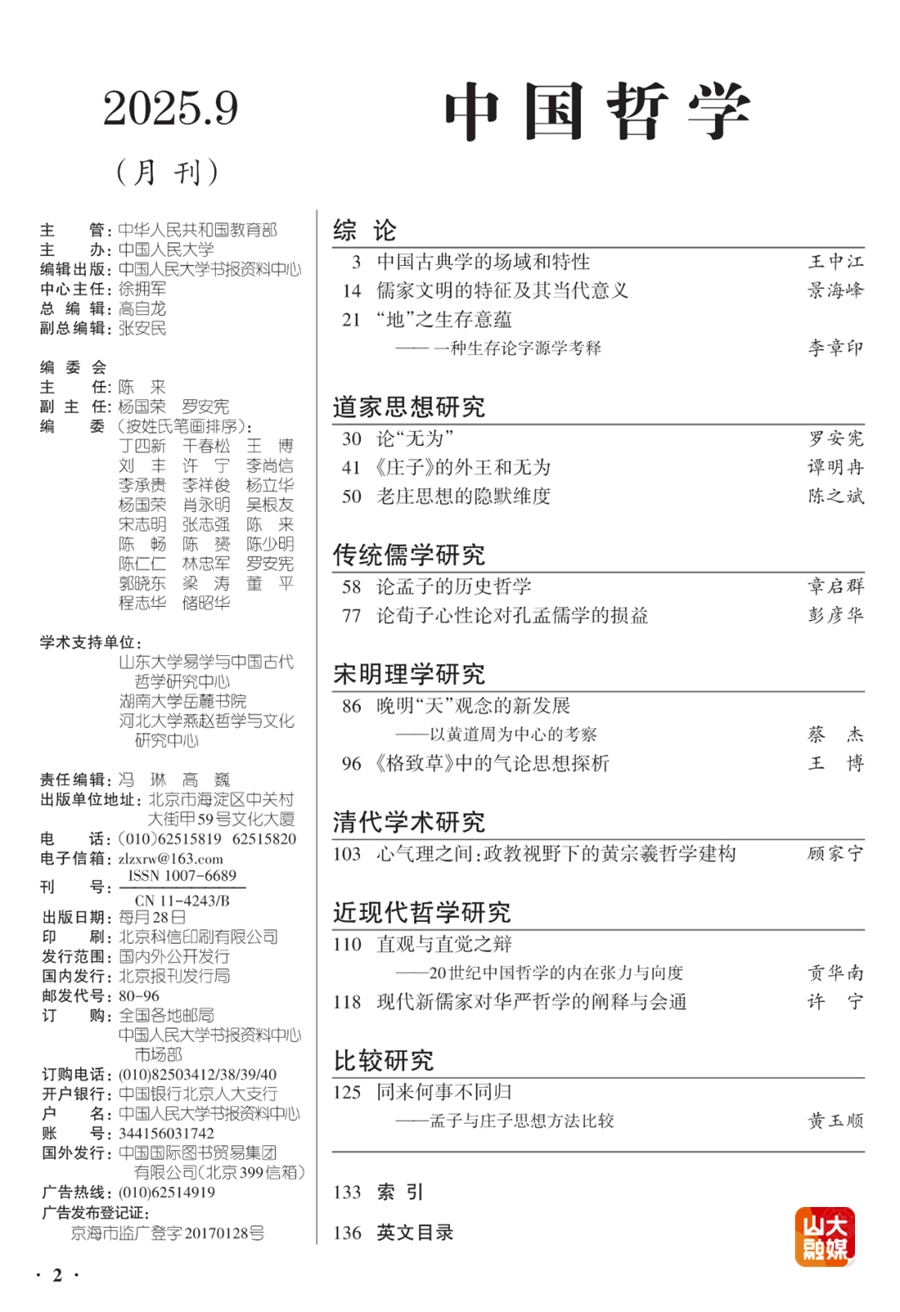《中国哲学》为中国人民大学书报资料中心编辑出版刊物,设有综论、易学研究、传统儒学研究、诸子学研究、宋明理学研究、道家思想研究、现代中国哲学研究等栏目。