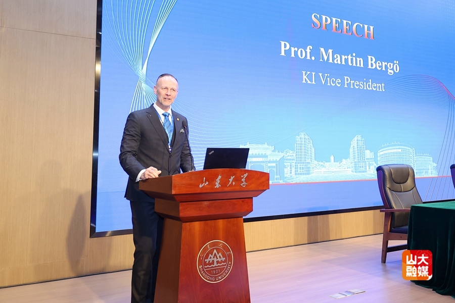 马丁·贝尔戈在致辞中表示,山东大学是卡罗林斯卡医学院在中国最重要的战略伙伴之一,双方在科研合作、学术交流与人才培养等方面取得了丰硕成果。期待以本次研讨会为契机,进一步拓展在口腔医学、生殖健康、生物材料等新兴领域的合作,携手推动转化医学合作平台的优化升级,共同打造更高水平的科研创新体系。