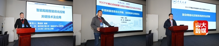 [本站讯]12月7日,TCCT不确定系统建模与优化专题研讨会暨泰山学者论坛在山东济南举行。会议由中国自动化学会控制理论专业委员会主办、山东大学控制科学与工程学院承办。本次会议汇聚全国各地150余位专家学者,围绕不确定系统建模与优化领域前沿热点问题展开深入研讨。