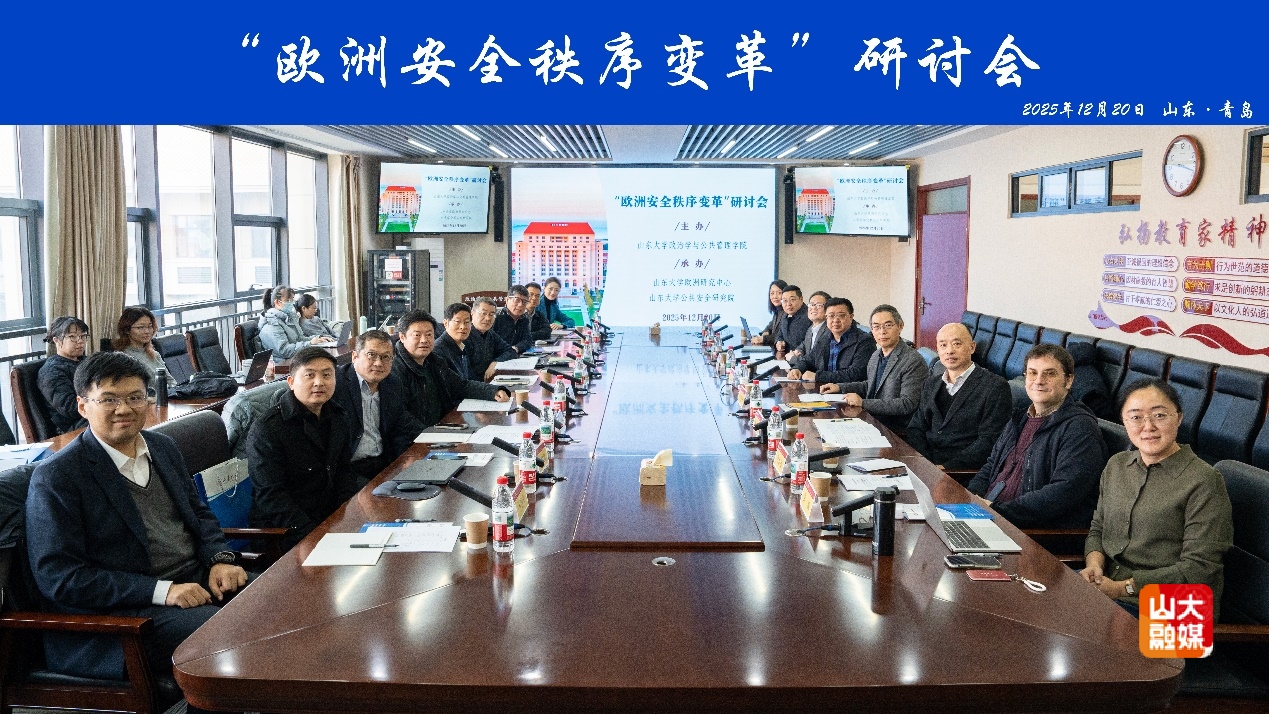 [本站讯]12月20日,“欧洲安全秩序变革”研讨会在山东大学青岛校区举行。此次会议由山东大学政治学与公共管理学院主办,山东大学欧洲研究中心和山东大学公共安全研究院联合承办。来自全国多所高校与研究机构的近二十位专家学者参加会议。