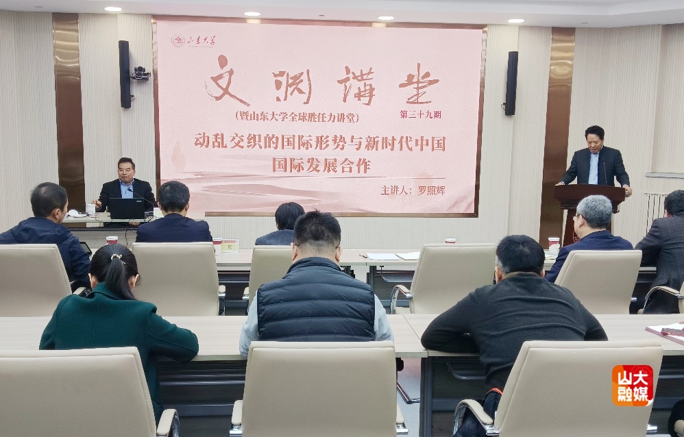 [本站讯]12月24日,山东大学“文渊讲堂”第39期在山东大学中心校区举行。国家国际发展合作署原署长、外交部原副部长罗照辉作题为“变乱交织的国际形势与新时代中国国际发展合作”的学术讲座。山东大学副校长曹现强主持讲座。