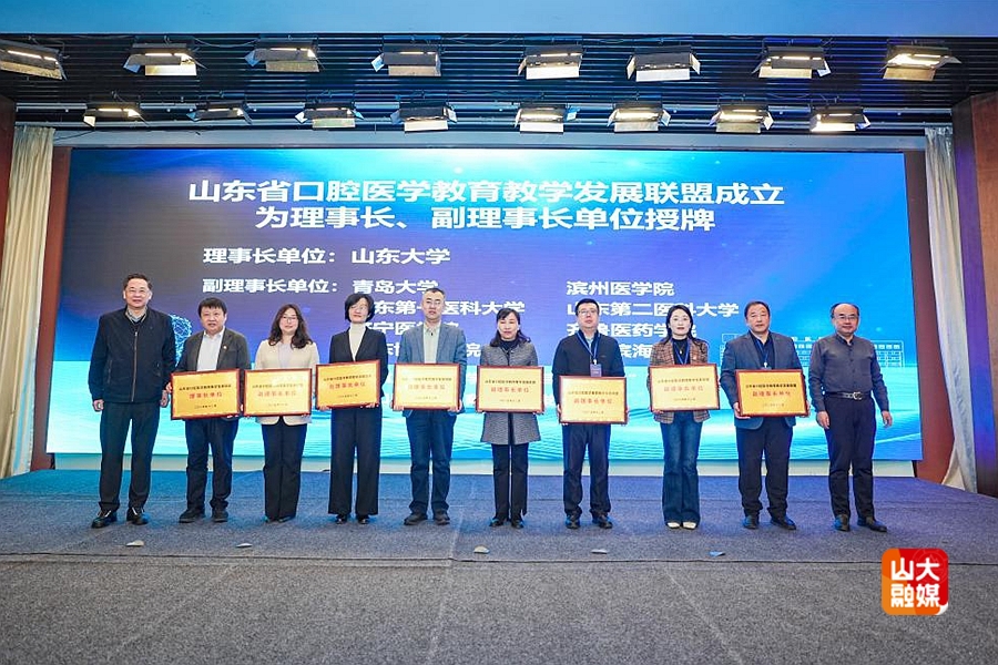 活动现场,与会嘉宾共同启动山东省人工智能赋能重点领域教学改革项目暨山东省口腔医学教育教学发展联盟。山东大学当选联盟理事长单位,王林、刘传勇为青岛大学、滨州医学院、山东第一医科大学、山东第二医科大学、济宁医学院、齐鲁医药学院、山东协和学院、青岛滨海学院等山东省口腔医学教育教学发展联盟理事单位进行授牌。