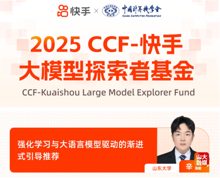 [本站讯]近日,2025年CCF-快手大模型探索者基金完成评审,共18位学者获资助,计算机学院副教授辛鑫入选。