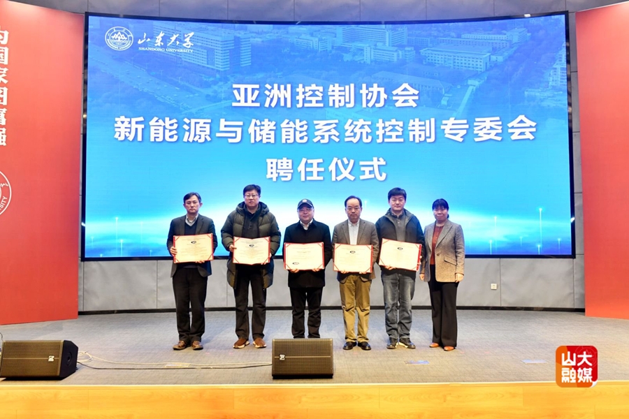 开幕式后举行了亚洲控制协会新能源与储能系统控制专委会的成立仪式。亚洲控制协会候任主席、澳大利亚斯威本科技大学副校长韩清龙线上致辞。亚洲控制协会新能源与储能系统控制专委会秘书长、山东大学教授邢兰涛介绍了专委会的筹备进展与组织架构。亚洲控制学会副主席刘志新为专委会主席及委员代表颁发聘书。