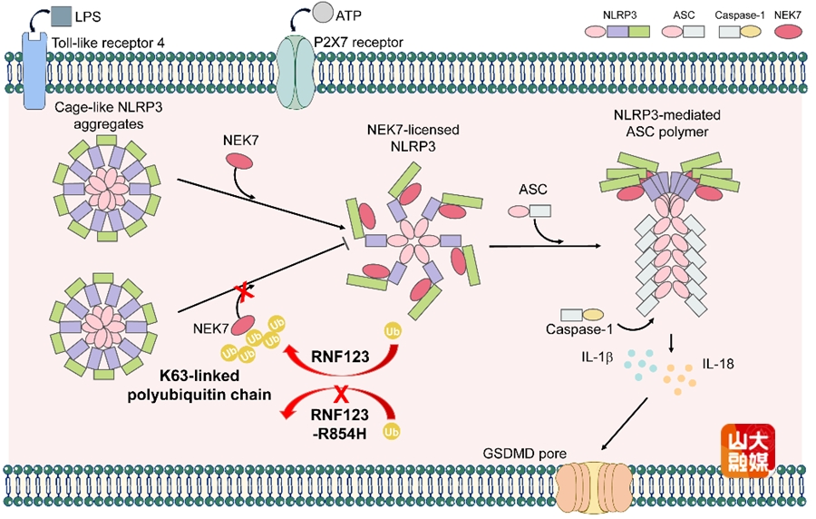 RNF123通过催化NEK7非锚定K63多聚泛素化调控NLRP3炎症小体激活(Liu F et al. PNAS.2026)