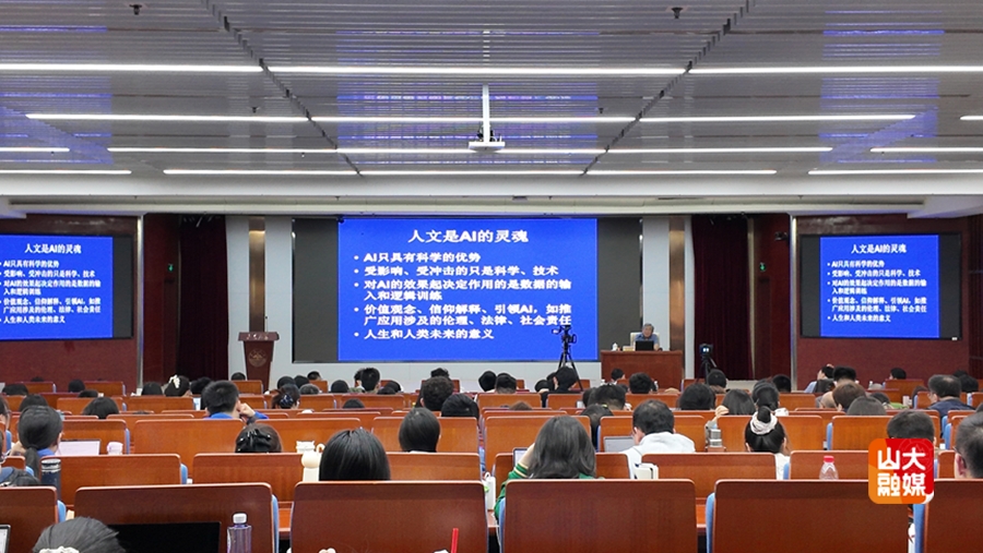 [本站讯]4月12日下午,山东大学“文渊讲堂·回信五周年大家谈”专题系列讲座第二期在山东大学中心校区举行。复旦大学文科特聘资深教授、香港中文大学(深圳)图书馆馆长葛剑雄作题为“人文是AI的灵魂 人文引领未来”的学术讲座。山东大学副校长曹现强主持讲座。