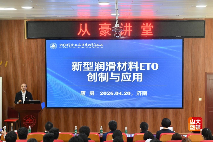 [本站讯]4月20日,中国科学院院士、中国科学院上海有机化学研究所研究员唐勇做客从豪讲堂并作题为“新型润滑材料ET0创制与应用”的学术报告。报告由山东大学化学与化工学院院长王琪珑主持。