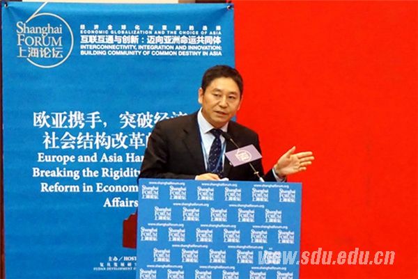 [本站讯]近日,山东大学移民研究所所长、哲学与社会发展学院副院长、社会学系宋全成教授应邀赴上海参加了中韩联合举行的主题为“互联互通与创新:迈向亚洲命运共同体”的“2016年上海论坛”,并在论坛“欧亚携手,突破经济、社会结构改革的阻碍”上作了题为“欧洲难民危机对中国的启示与借鉴”的演讲。