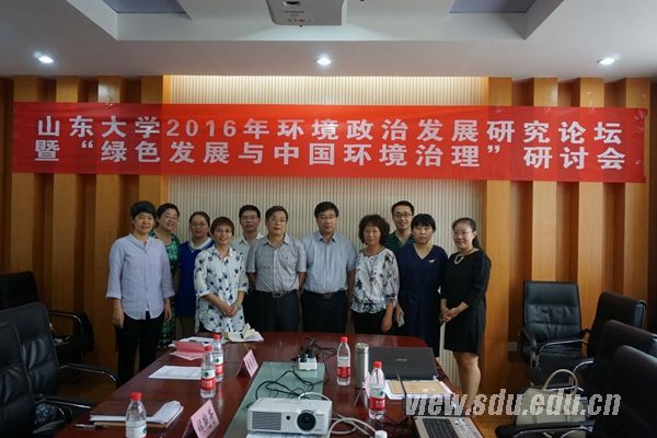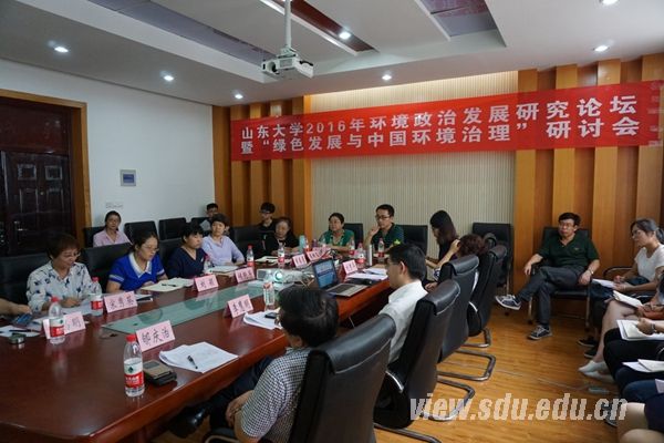 [本站讯]9月25日,山东大学2016年环境政治发展研究论坛暨“绿色发展与中国环境治理”研讨会在山东大学洪家楼校区举办。本次论坛由山东大学政治学与公共管理学院、山东大学环境政治研究所主办。北京大学、山东大学、山东师范大学等高校的专家学者,环境非政府组织负责人,学生代表等30余人参加了论坛。