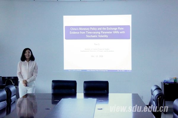 [本站讯]10月13日下午,西南财经大学中国金融研究中心李雪副教授做客经济学院第152期高级经济学讲座,为师生带来了题为“China’s Monetary Policy and the Exchange Rate: Evidence from Time-varying Parameter VARs with Stochastic Volatility”的学术报告。