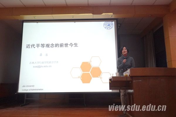 [本站讯]10月22日,由吉林大学行政学院政治学系薛洁教授主讲的讲座于山东大学洪家楼校区召开。本次讲座为政治学前沿系列讲座,主题为“近代平等观念的前世今生”,讲座围绕不同社会时期体现出的不同平等观念及民众感受展开论述,深入浅出地讲解了平等观的发展脉络。讲座由山东大学政治学与公共管理学院楚成亚教授主持,吸引了百余名师生参加。