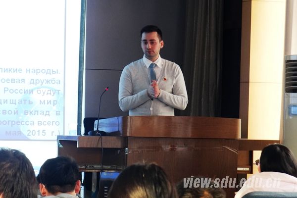 在互动环节中,在座同学踊跃发言,纷纷举手提问,谢尔盖副教授用生动的回答为大家答疑解难,使同学们受益匪浅。黄登学教授在讲坛最后进行总结,表示谢尔盖副教授从国际格局的变化出发,总结了中俄在政治、能源、经济、文化尤其是语言方面的合作,为中俄关系发展提出了新的思路。中俄双边关系备受关注,两国关系的发展对国际格局也有着重要影响。最后,讲坛在大家热烈的掌声中结束。
