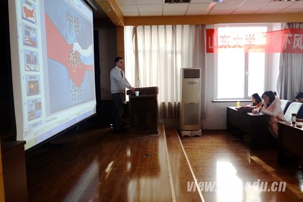 [本站讯]12月1日下午,由山东大学研究生院、党委研究生工作部主办,政治学与公共管理学院承办的2016年第56期(总第580期)“稷下风”研究生学术讲坛于洪家楼校区举行。俄罗斯人民友谊大学谢尔盖·巴罗夫副教授做客此次讲坛,以“中俄在国际舞台上的合作——两国政府对解决国际重大问题的异同”为主题作了讲座。本次讲坛由政管学院黄登学教授主持,近百名师生参加。