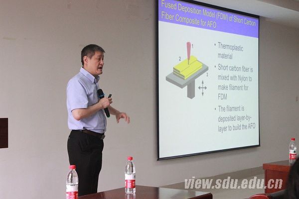 [本站讯]5月25日,由山东大学研究生院、党委研究生工作部主办,机械工程学院承办的第21期(总第545期)“稷下风”研究生学术讲坛在山东大学千佛山校区举办。美国密歇根大学Albert Shih教授作了题为“Cyber Design and Additive Manufacturing of Custom Ankle Foot Orthoses ”的报告。