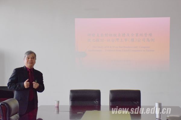 [本站讯]4月24日下午,山东大学经济学院财政系两岸税收学术系列讲座第三场在中心校区举办。台湾逢甲大学两岸税务研究中心主任谢耀智教授为经济学院师生带来了题为“研发支出对租税负担及企业经营绩效之探讨——以台湾上市(柜)公司为例”的学术报告。