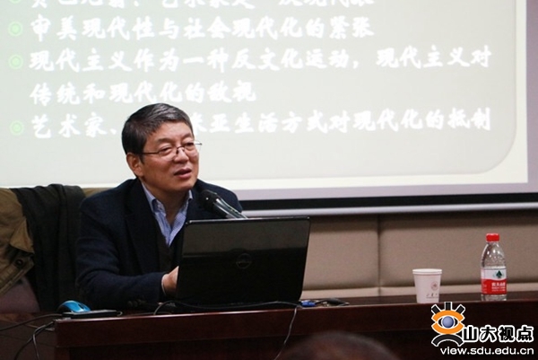 [本站讯]近日,南京大学艺术学院教授、南京大学人文社会科学高级研究院院长、教育部长江学者特聘教授周宪先生做客山东大学文学院博士生高端学术讲坛,在中心校区为广大师生带来一场题为“西方艺术从古典到现代再到后现代”的精彩讲座,讲座由文学院副院长李鲁宁主持。