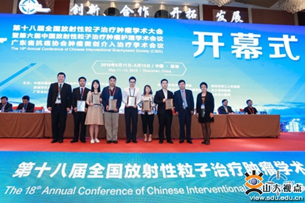 作为中国抗癌协会肿瘤微创治疗专业委员会粒子分会副主任委员,李玉亮应大会组委会邀请,作了题为《放射性粒子植入治疗纵隔淋巴结转移癌》的主题报告。山东大学第二医院介入医学科主治医师刘斌撰写的论文《125Iodine brachytherapy via a trans-superior vena cava approach in patients with metastases in middle mediastinal lymph nodes:A novel approach》获优秀论文二等奖,录播的《平面模板引导碘125放射性粒子植入治疗胰腺癌》获手术视频技术比赛二等奖。