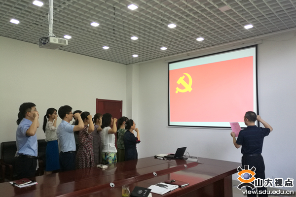 此前,6月29日,学生就业创业指导中心党支部举行了“喜迎山东大学第十四次党代会暨庆祝建党97周年——党员重温入党誓词宣誓仪式”主题党日活动。宣誓仪式结束后,大家集体观看了由中共中央组织部、中共中央文献研究室、中共中央党史研究室、中央电视台联合摄制的历史文献纪录片《信仰》,并交流学习心得。