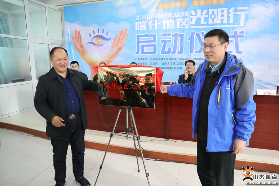 现场,山东大学眼科中心喀什地区工作站正式成立,山东大学第二医院眼科主任、山东大学眼科中心主任张晗和彭银星共同为工作站揭牌。张晗表示,工作站将为鲁疆两地眼科医生提供更大的交流平台。双方将从人才队伍建设、眼科诊疗模式、新技术交流等方面展开合作,努力提高当地眼疾救治能力,提升眼病诊疗技能。