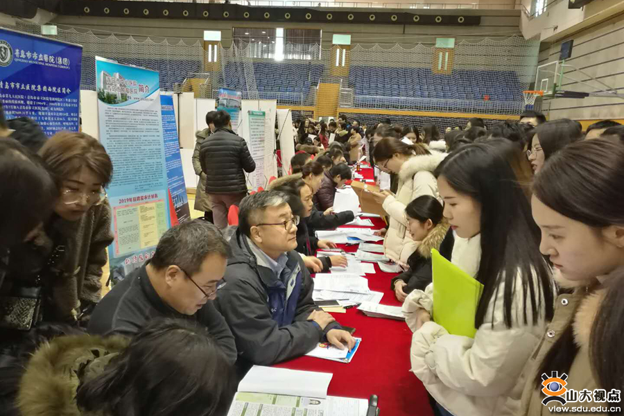 [本站讯]12月14日,山东大学与青岛市卫计委共同举办的青岛市26家医院组团专场招聘会在趵突泉校区举行,山东大学齐鲁医院(青岛)、青岛市市立医院、青岛市中心医院、青岛市第五人民医院等26家青岛市重点医院参与招徕人才,就业岗位涵盖医药类本、硕、博临床医学、医药管理、公共卫生等学科领域,吸引了山东大学大批医药专业毕业生积极参与。
