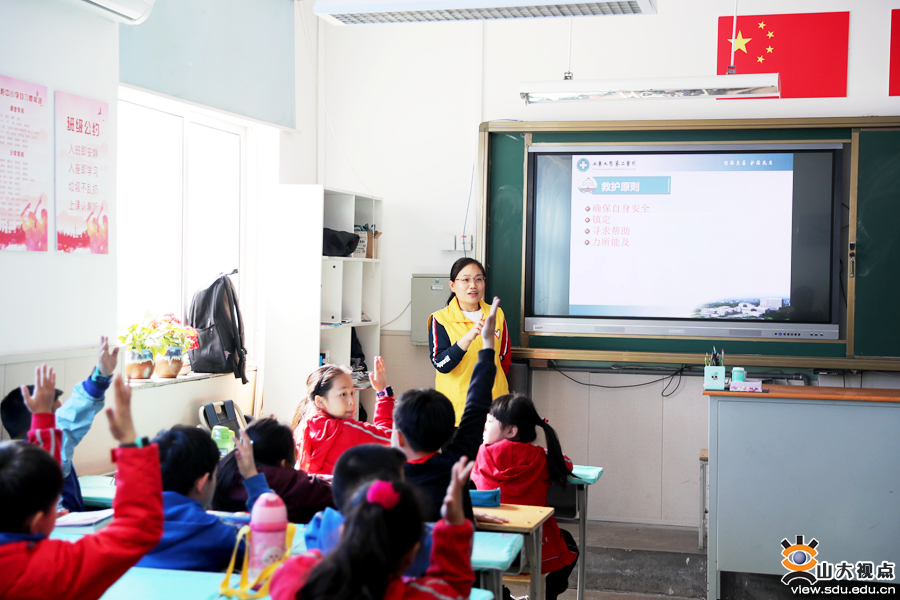 [本站讯]3月12日下午,第二医院“贵在知心,救在身边”全民普及CPR志愿团队来到山大附中小学部,为2016级1班的同学们进行了一场别开生面的急救知识技能讲座