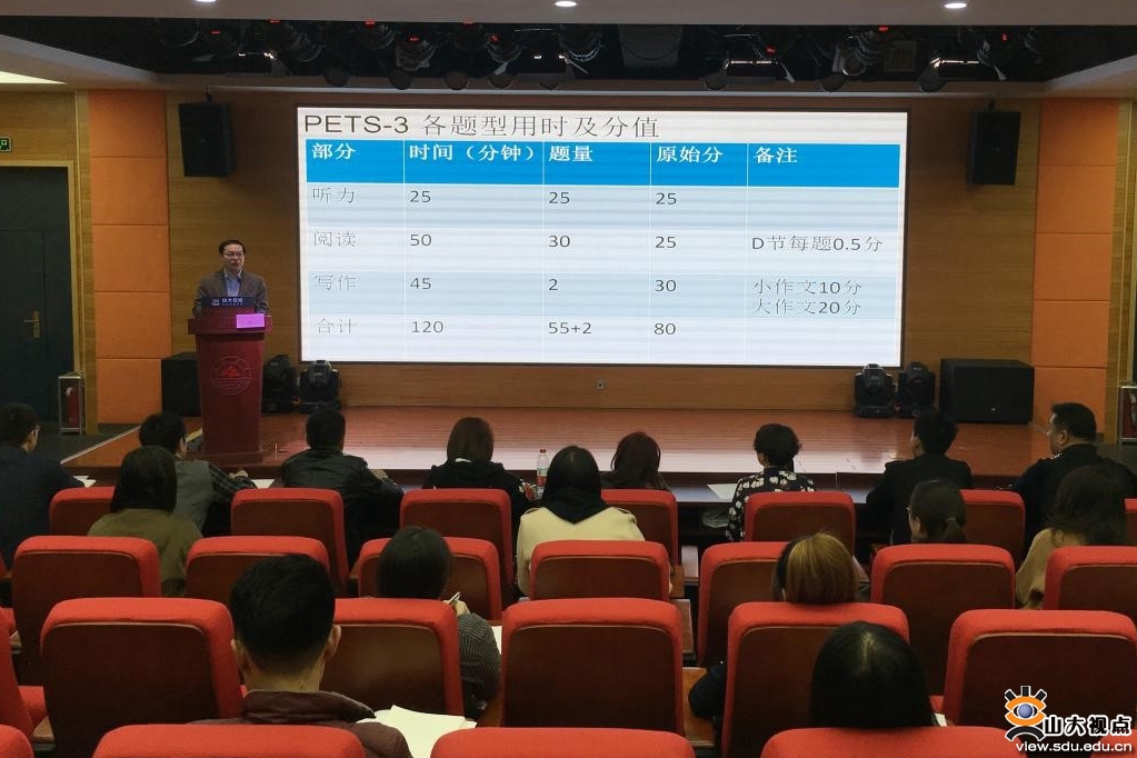 [本站讯]3月17日上午,全国英语等级考试(三级)考前辅导面授直播在继续教育学院培训楼报告厅举行。山东大学外国语学院苏永刚教授为大家进行考前辅导。100余名学生参加了现场面授,2000余名学生通过网络同步观看。
