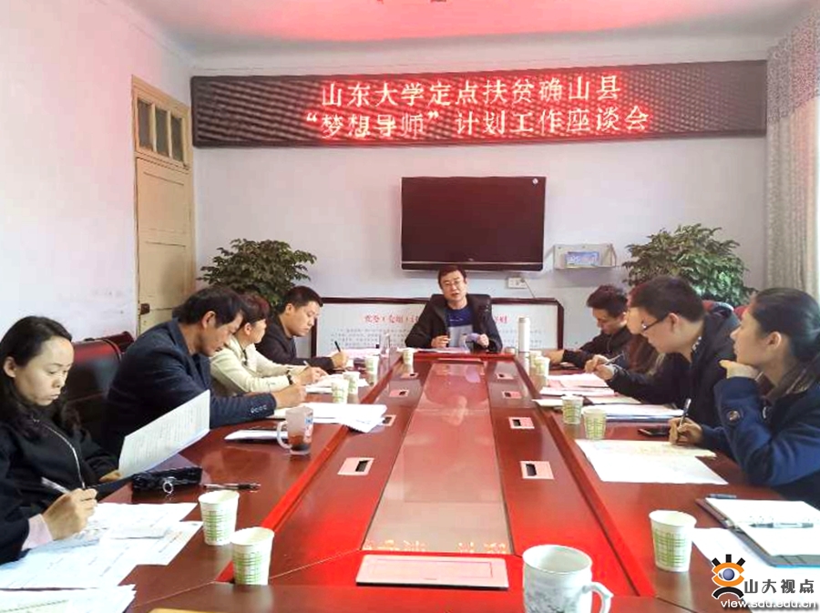 座谈上,罗超首先说明了“梦想导师”计划的背景,提出“梦想导师”计划立足于确山县发展现状,充分利用山东大学优质资源,通过山东大学学生与确山县中小学生结对子陪伴的形式,开展“大梦想家”“梦想团支部”及“追梦”社团等活动,关爱中小学生的成长成才。为促进该活动的高效开展,罗超对参会人员提出要求。第一,应统一思想、高度重视该活动,推动新生事物的产生和蓬勃发展。第二,应集思广益、联系当地现状,提出意见、完善方案。第三,应该贯彻“做实”理念、注重学生的发展而不是流于形式。孟雪花对该方案给予了高度肯定,并表示教育扶贫是脱贫攻坚的重中之重,教育局将全力配合该方案的实施。