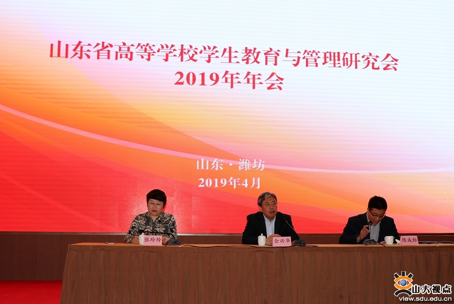 [本站讯]4月16日至17日,由山东省委教育工委与山东大学共同主办的山东省高等学校学生教育与管理研究会2019年年会在潍坊举行。研究会会长、山东大学党委副书记仝兴华出席会议并讲话。