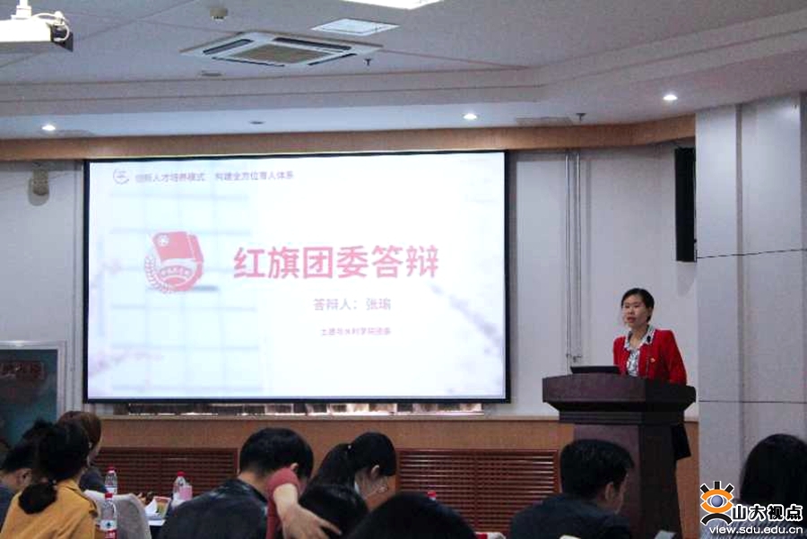 在经验分享与五四红旗团委答辩环节,入选2018年度红旗团委的经济学院、临床医学院、国际教育学院和机械工程学院就自身的先进经验进行了分享。他们从思想引领、文体活动、社会实践、志愿服务、创新创业等素质拓展培养工作板块出发,展示了过去一年取得的突出成果,彰显了开拓学生创新视野、丰富学生人文底蕴、培养全面发展高素质人才的育人思路。各学院团委负责人进行了答辩,展示了本学院共青团工作的亮点和成果。哲学与社会发展学院团委负责人详细介绍了依托素质拓展培养系统,以志愿服务和社会实践两方面为主的特色活动育人体系;新闻传播学院团委负责人以“青春作伴,‘新’火相传”为主题,用数据展现了队伍虽小,但组织制度健全、文化学术活动丰富的特点;数学学院依托专业特色的培养方针,分享了“三全育人”模式的落实路径。外国语学院、软件学院、护理学院、管理学院等济南校本部各学院的团委负责人依次进行了答辩。青岛校区、威海校区各学院(书院)团委负责人进行了答辩分享,结合本校区的特色资源与学生培养实际情况,向三地的团学工作者分享了独特的育人视角与工作思路。