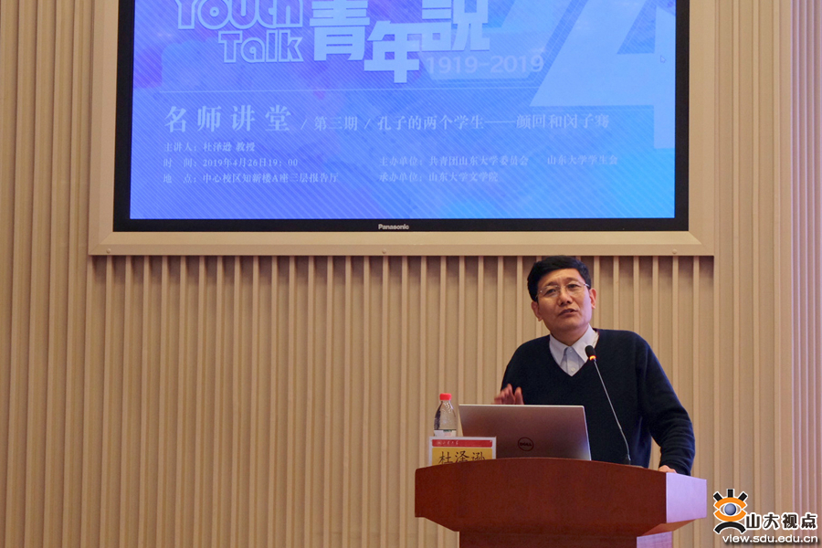 [本站讯]4月24日晚7点,由共青团山东大学委员会、山东大学学生会主办,山东大学文学院承办的“青年说”名师讲堂第三期杜泽逊教授专场于中心校区举办。山东大学文学院院长、“长江学者”特聘教授杜泽逊带来了精彩报告。山东大学团委书记张熙、团委副书记李一楠、文学院党委副书记王萌出席本次活动。