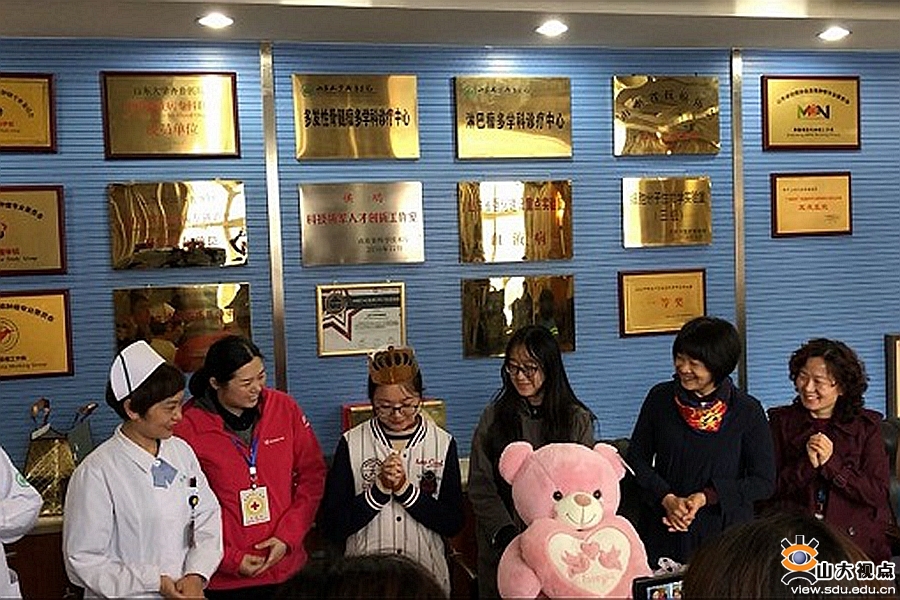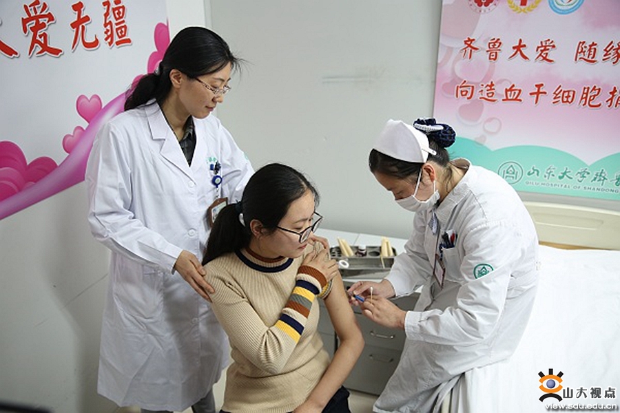 捐献造血干细胞的女生名叫宋丹,是药学院2017级的学生。2017年5月20日,她通过学校组织的一次献血活动,加入了中华骨髓库。2018年寒假期间,她接到济南市红十字会电话,说她和一位大哥哥初配成功,但因为这位大哥哥患得是急性白血病,所以要尽快做高分辨检测和体检。对方病情急危,宋丹毫不犹豫就直接答应了。在距离春节没几天的时候,宋丹从老家赶回济南做相关检查。各项检查都很顺利,但是,原定4月1日的捐献因对方病情变化而不得不推迟。前几日,患者病情好转,达到造血干细胞移植条件,于是宋丹再次检查,并进入了打动员剂阶段。虽然学校考试临近,宋丹还是没有丝毫犹豫和退却。