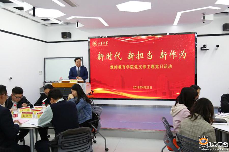 [本站讯]4月25日,为深入贯彻落实习近平新时代中国特色社会主义思想和党的十九大精神,切实加强党的政治建设,落实学院“提高政治站位,加强顶层设计,遵循教育规律,提高质量,防范风险”的发展目标,继续教育学院开展主题党日行动学习。继续教育学院院长靳光华、副院长刘灿伟参加活动。