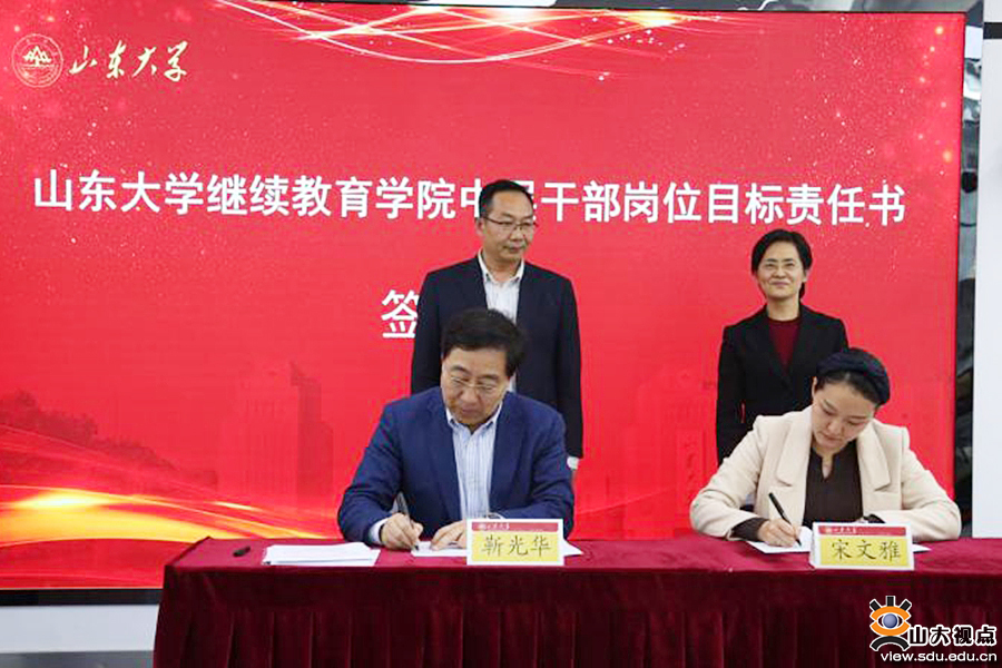 随后,学院新任中层干部以科室为单位签署了岗位目标责任书,并一一进行表态。继续教育学院党支部全体党员、中层干部参加相关活动。