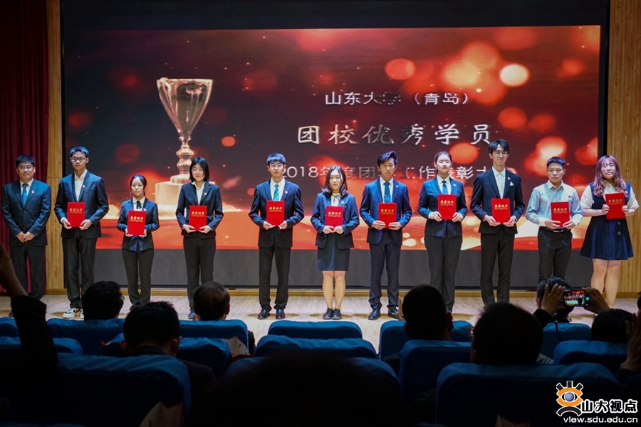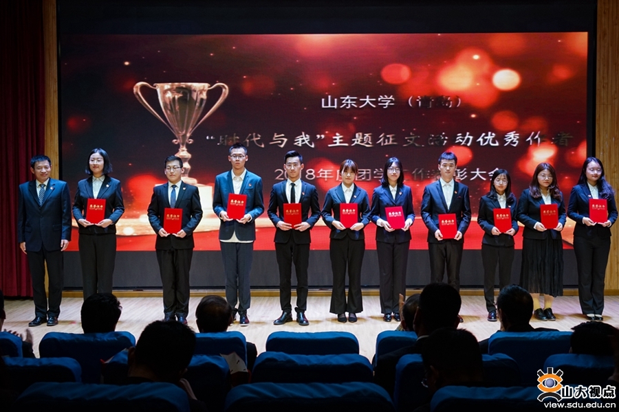 红旗团委一多书院团总支书记于玲、十佳共青团员代表程奕嘉、十佳团支部代表考志平、青岛校区第二届创新创业大赛获奖团队负责人管伟康、志愿服务先进个人代表李兆琛、团校优秀学员代表衣江雪分享了团学工作的经历和感悟。青岛校区红色先锋营作为学生入党积极分子组织,秉承五四精神,担当青春责任,以视频、诗朗诵等精彩纷呈形式展现了其昂扬向上的精神风貌。红色先锋营国旗班成员代表以英姿飒爽的护旗亮相展示了青年学子的青春活力,博得了在场观众的阵阵掌声。青岛校区海鸥剧社表演的话剧《青年梦·家国情》深深地打动了现场观众。青岛校区党工委、校长办公室,政工处,学工部,公共教学管理服务中心,研究生教育办公室,各学院相关负责人以及校区学生代表参加大会。