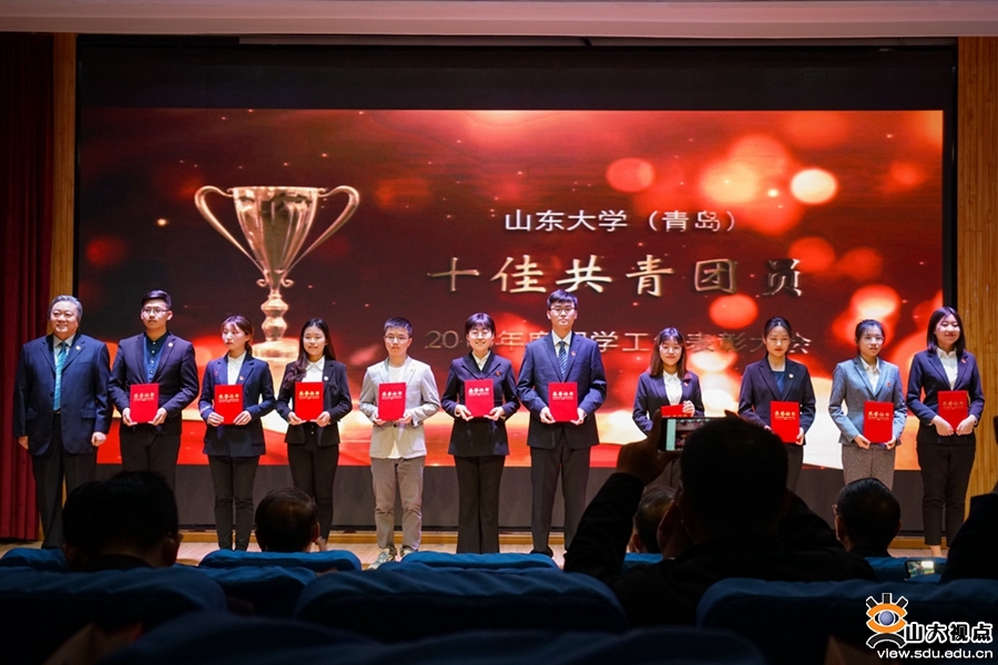 青岛校区副校长韩明涛为“十佳共青团员”颁奖。