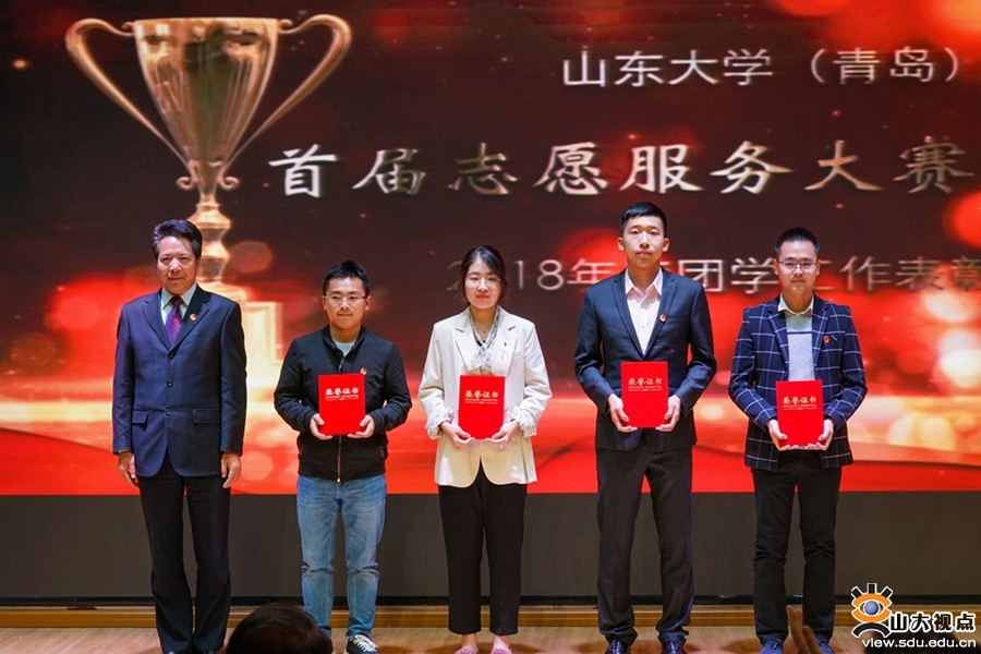 青岛校区副校长曹现强为“首届志愿服务大赛获奖团队”颁奖。