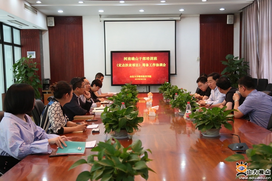 [本站讯]5月12日,继续教育学院在洪家楼校区召开工作协调会,对河南确山领导干部培训班(定点扶贫项目)、山东大学管理人员公文处理核心技能提升工作坊培训班及中华美德教育高峰论坛三个项目的筹备工作进行沟通协调,并确定解决方案。会议由继续教育学院院长靳光华主持。