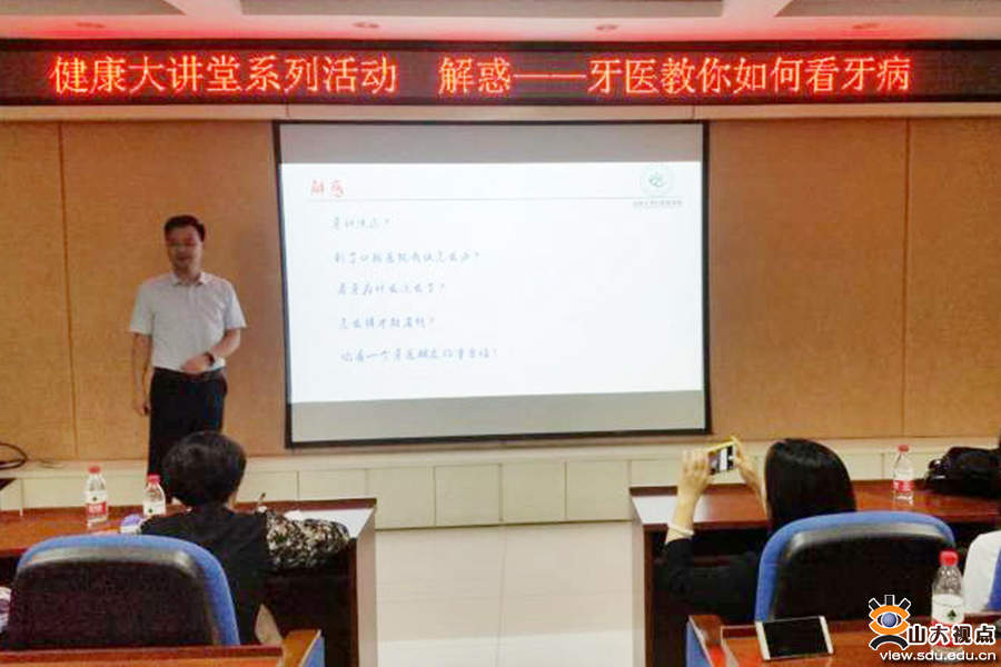 [本站讯]5月23日,由校工会、妇委会、卫生与健康服务中心举办的口腔保健知识讲座在千佛山校区举行。讲座由口腔医学院副主任医师林东主讲,校妇委会主任兼工会副主席朱桂英主持讲座。