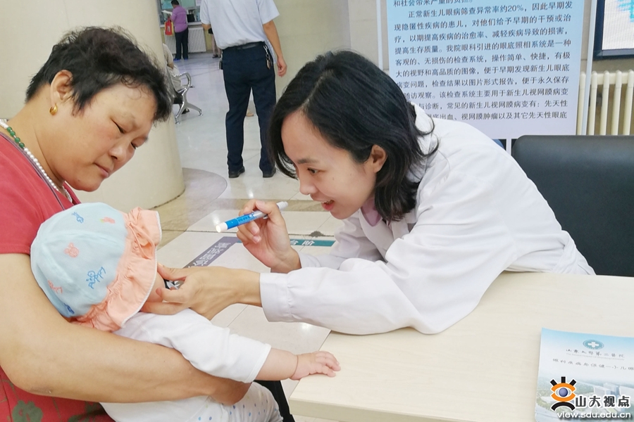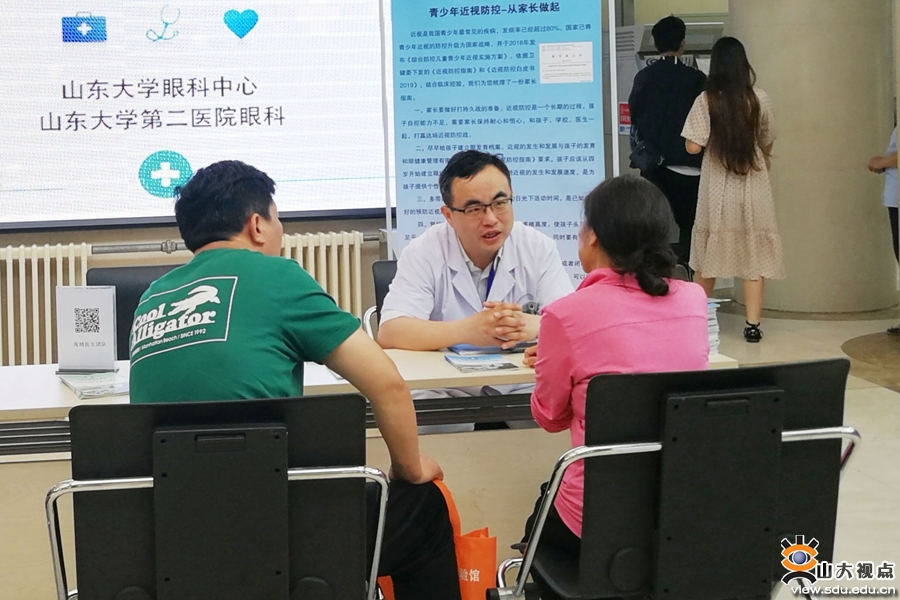 该活动以新生儿眼病筛查和青少年近视的科学防控为主要内容,并对儿童、青少年常见眼部疾病进行宣教。活动当天,来自眼科的医疗、特检、护理人员及志愿者,分别在山东大学第二医院门诊楼及山东大学中心校区综合服务楼,为广大群众、山东大学教职工和学生进行爱眼护眼的宣教,并详细解答就诊群众咨询的问题。