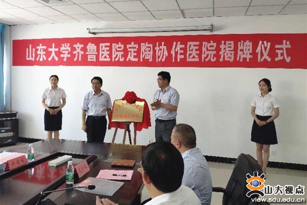[本站讯]6月18日,齐鲁医院对口支援协作医院揭牌仪式在菏泽市定陶区人民医院举行。齐鲁医院院长陈玉国、副院长田辉,菏泽市卫生健康委员会主任陈宝华,定陶区区委书记聂元科,定陶区区委常委、副区长马常斌,定陶区政协副主席、区人民医院院长耿战秋等出席仪式。