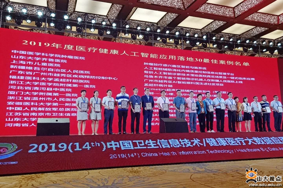 [本站讯]6月19日至21日,中国卫生信息技术/健康医疗大数据应用交流大会暨软硬件与健康医疗产品展览会在西安举行。山东大学第二医院申报的“医疗大数据全周期人工智能诊疗平台”入选2019年医疗健康人工智能应用落地30最佳案例。医院副院长贾红英代表医院领奖。