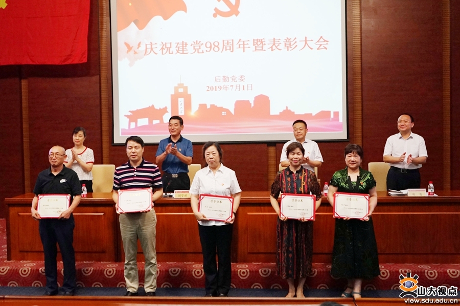 大会在雄壮的《国歌》中开幕。党委副书记巩勇宣读了《中共山东大学后勤委员会关于表彰先进党支部、优秀党员、优秀党务工作者的决定》,刘学祥,殷录民,后勤党委副书记张卫东、巩勇为受表彰的单位和个人颁发证书。